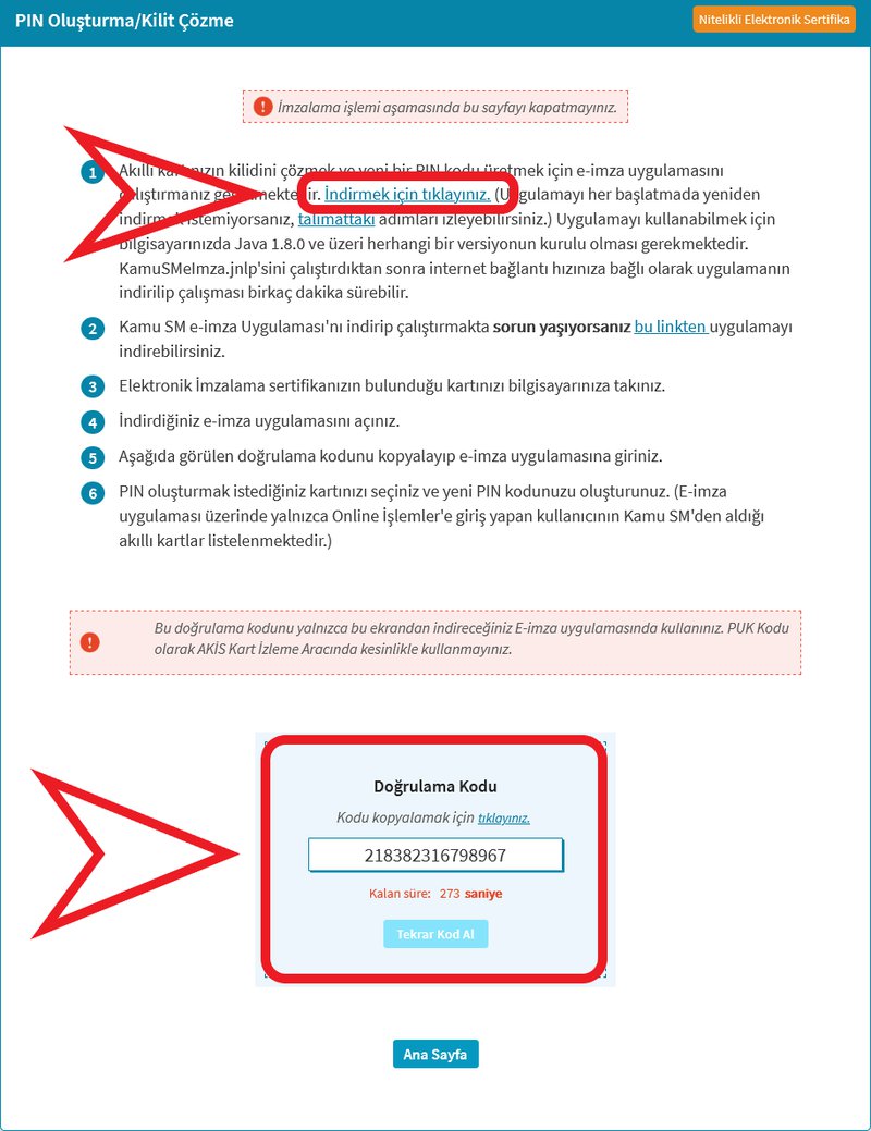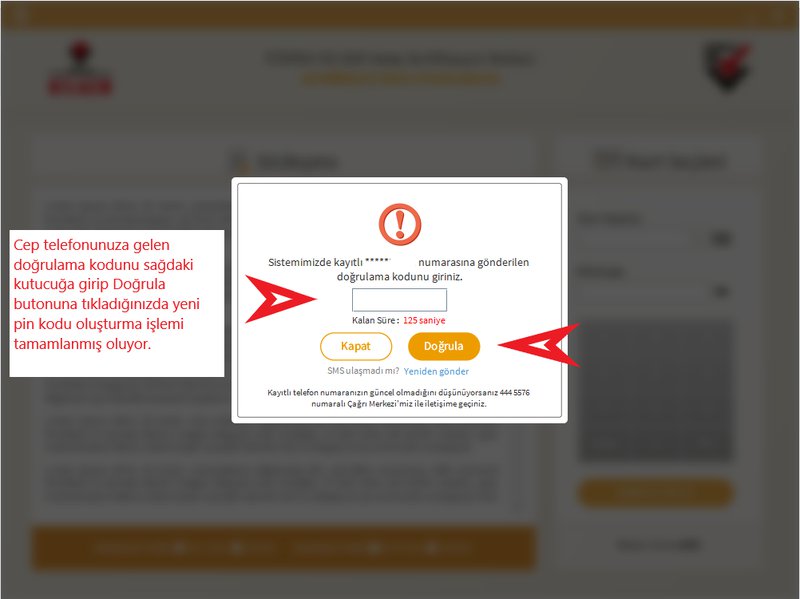 Kamu Sertifikasyon Merkezi web sitesine (https://kamusm.bilgem.tubitak.gov.tr/) girdikten sonra resimlerdeki adımları takip ederek yeni pin kodu oluşturma işlemini gerçekleştirebilirsiniz.